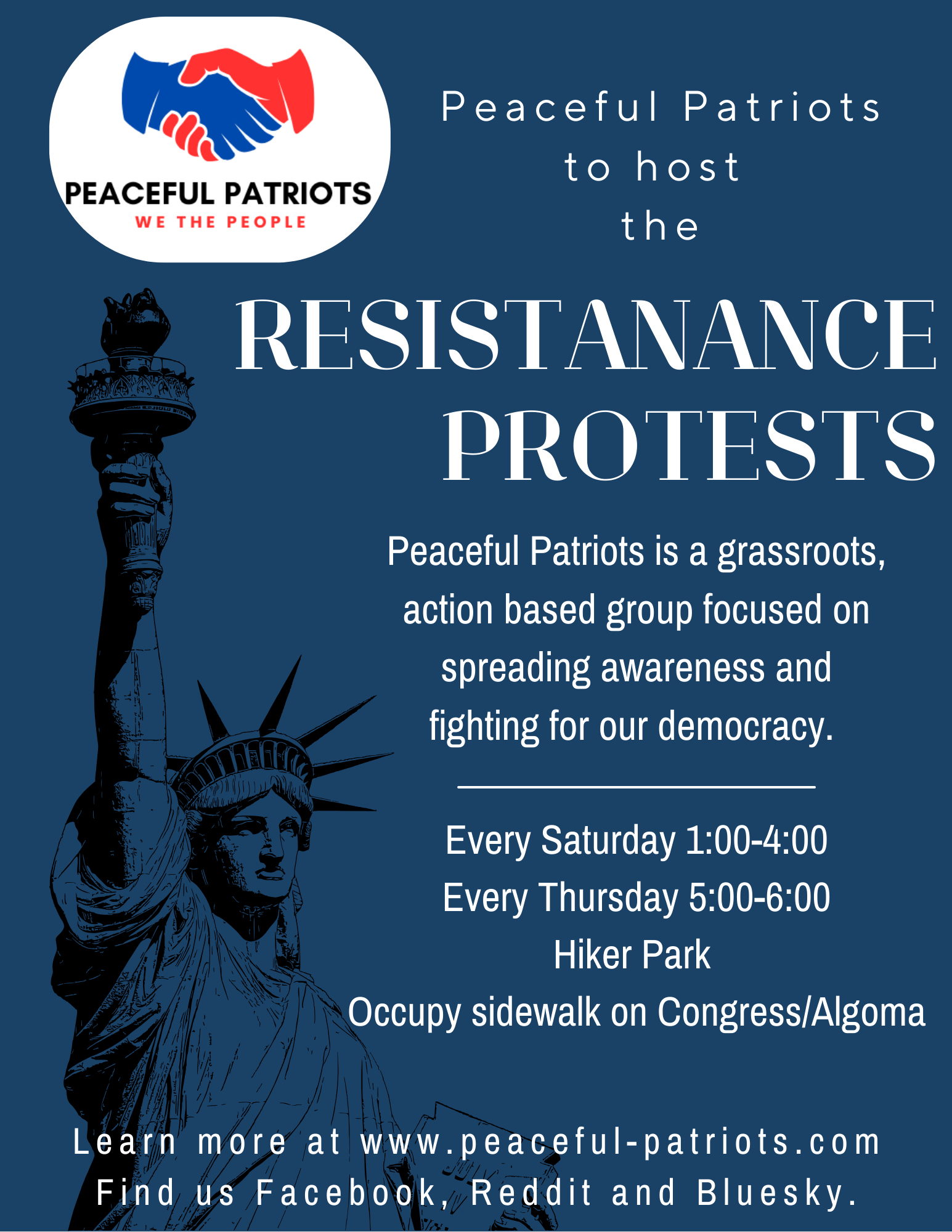 The Resistance Protests Saturdays at Hiker Park (Congress/Algoma) 1:00pm-4:00pm