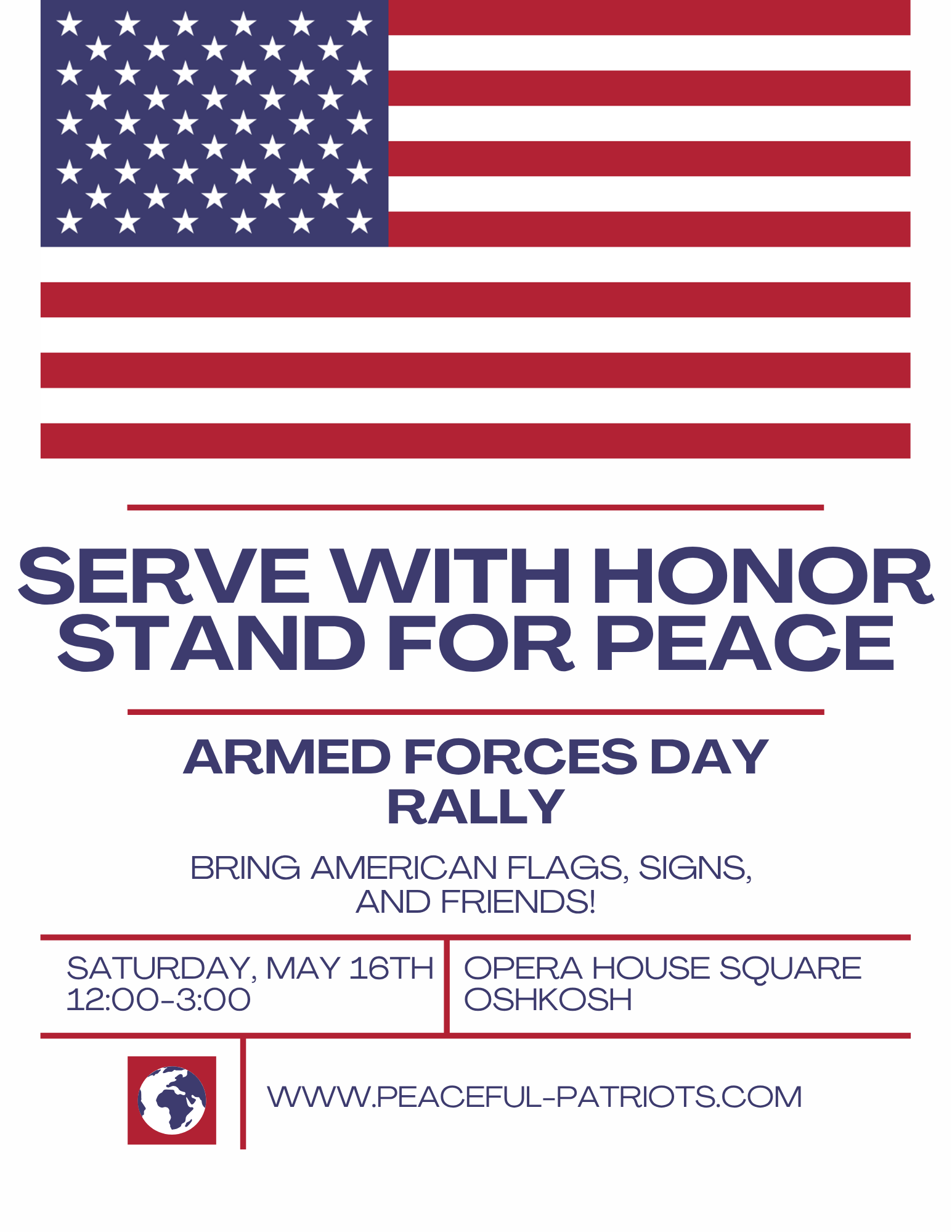 Back to All Events Armed Forces Day Rally Saturday, May 16, 2026 12:00 PM 3:00 PM Google Calendar ICS